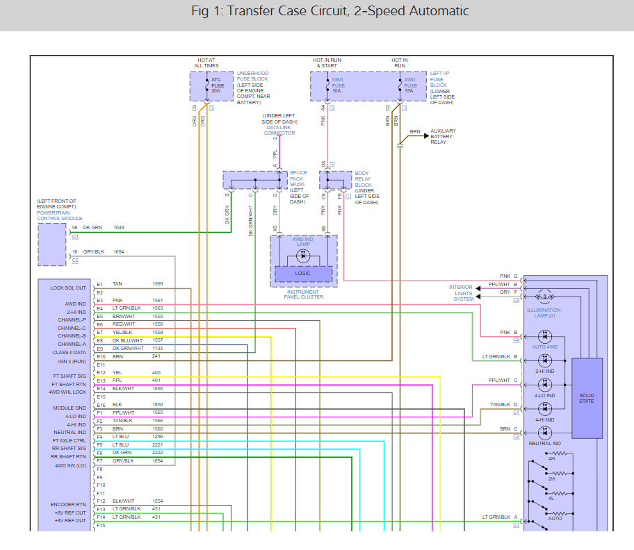 Here are the wiring diagrams for the transfer case so you can see how the system works and the fuse location as well. Check out the images (below). Please let us know what happens.