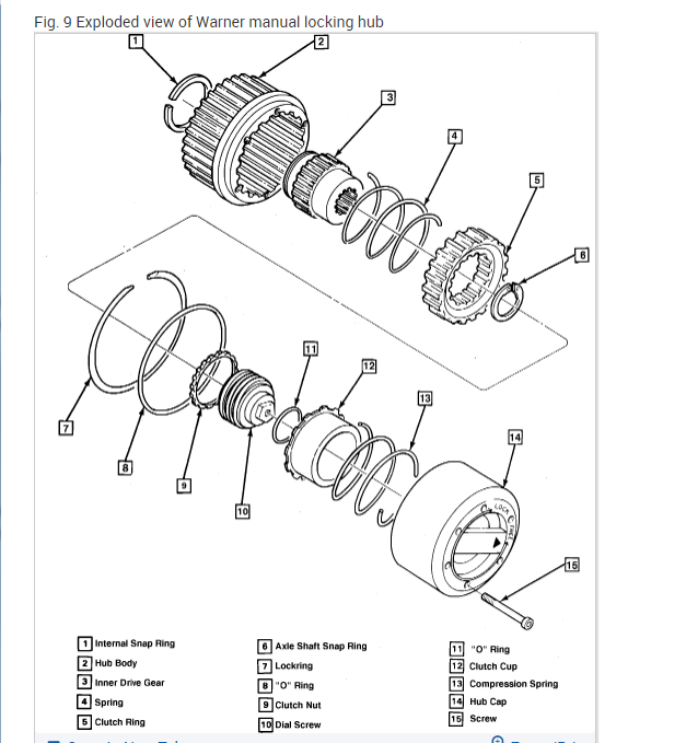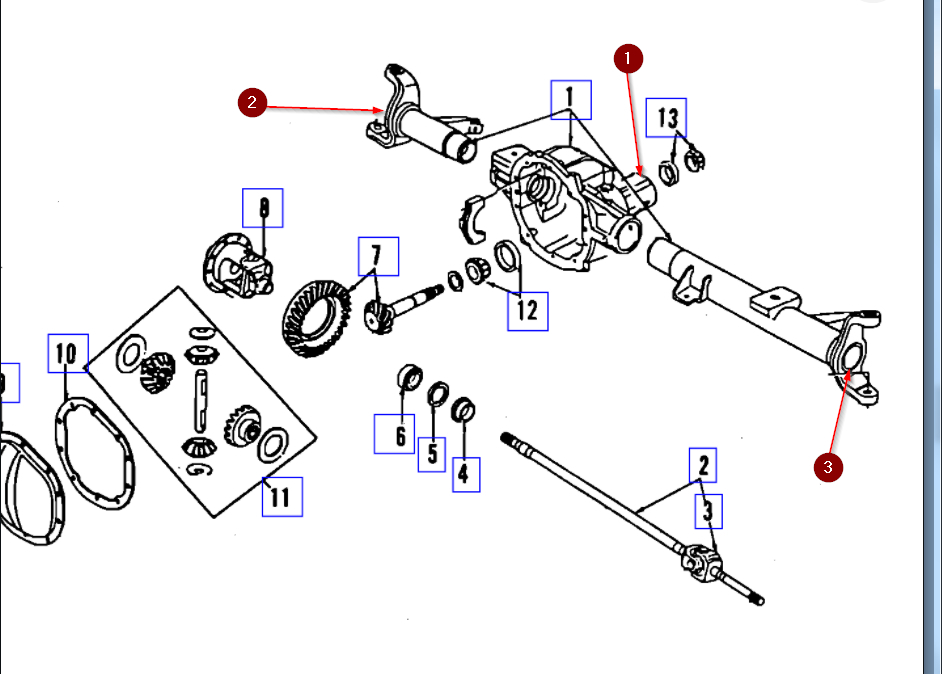 Can you clarify for me that the front drive shaft is spinning but the axles at the tires/wheels are not spinning? I attached the diagram below of the front axle. Is the front axle spinning at the red numbers? Please let me know if they are as you may have a locking hub issue.