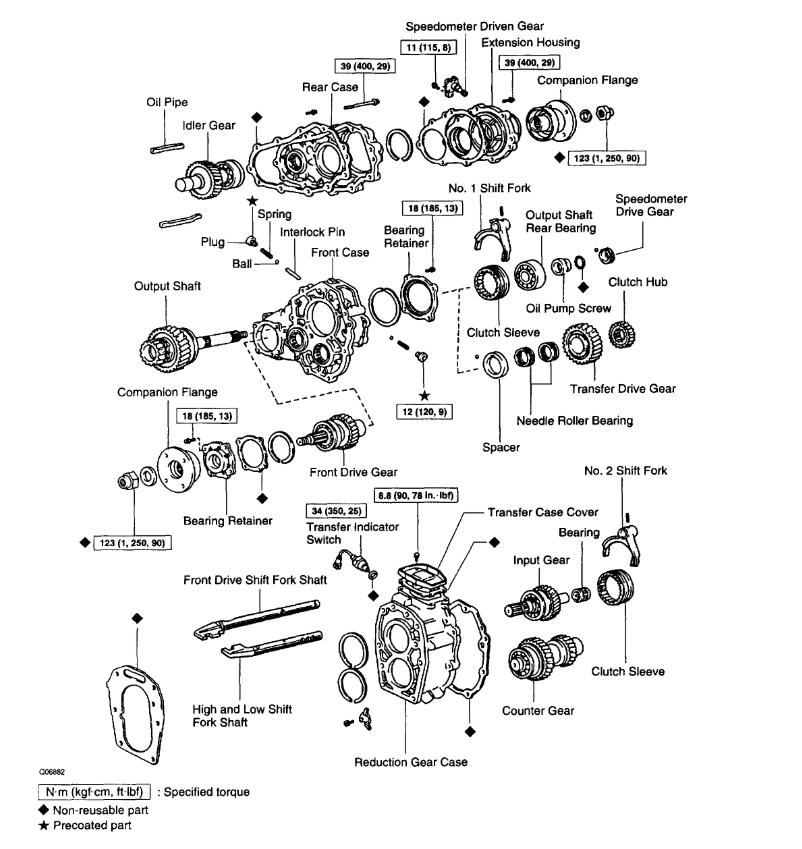 Did you have different size tires front to back? If so the transfer case will overheat. Here is a an exploded view of the unit so you can see how it works. This is manual shift correct? Check out the diagrams (below). Please let us know what you find. We are interested to see what it is.