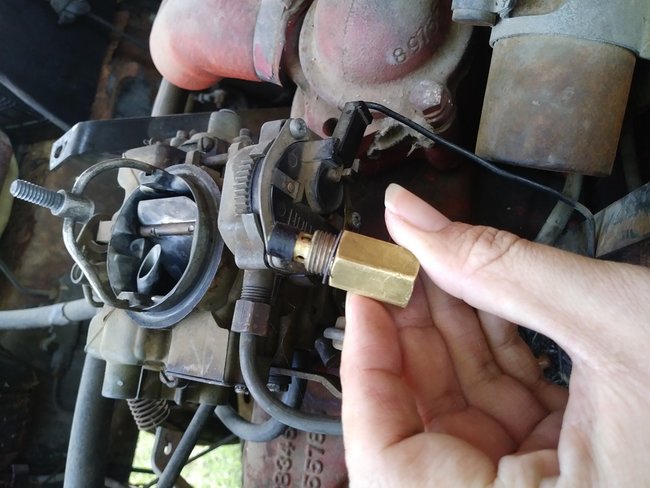 Our vehicle is not getting gas to the carburetor. The fuel pump was recently replaced but they must have forgot to change the fuel filter and flush the lines because the filter was clogged when we received it back from the garage. I have changed the filter and watched for pressure to develop in the fuel line to the carburetor. There seems to be ample pressure from the filter to what appears to be a brass nozzle screwed into the side of the carburetor. No one in town can tell me what this brass piece is or how to replace it. The vehicle will start with either carburetor cleaner or gas poured in the carburetor and will continue to run until shut off. Once off whether warm or left to cool it will not start without something being added to the carburetor to start it. I am not very automotive inclined, but I am trying to learn what I can to avoid spending high dollars to take into the shop. Thank you for any advice or tips.