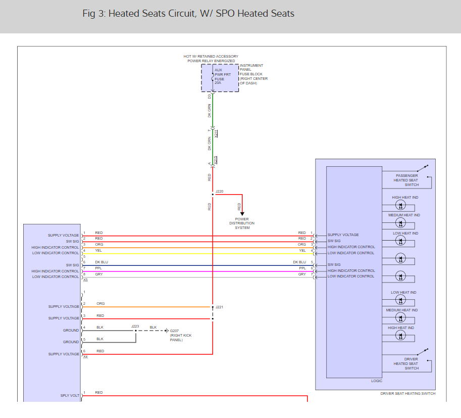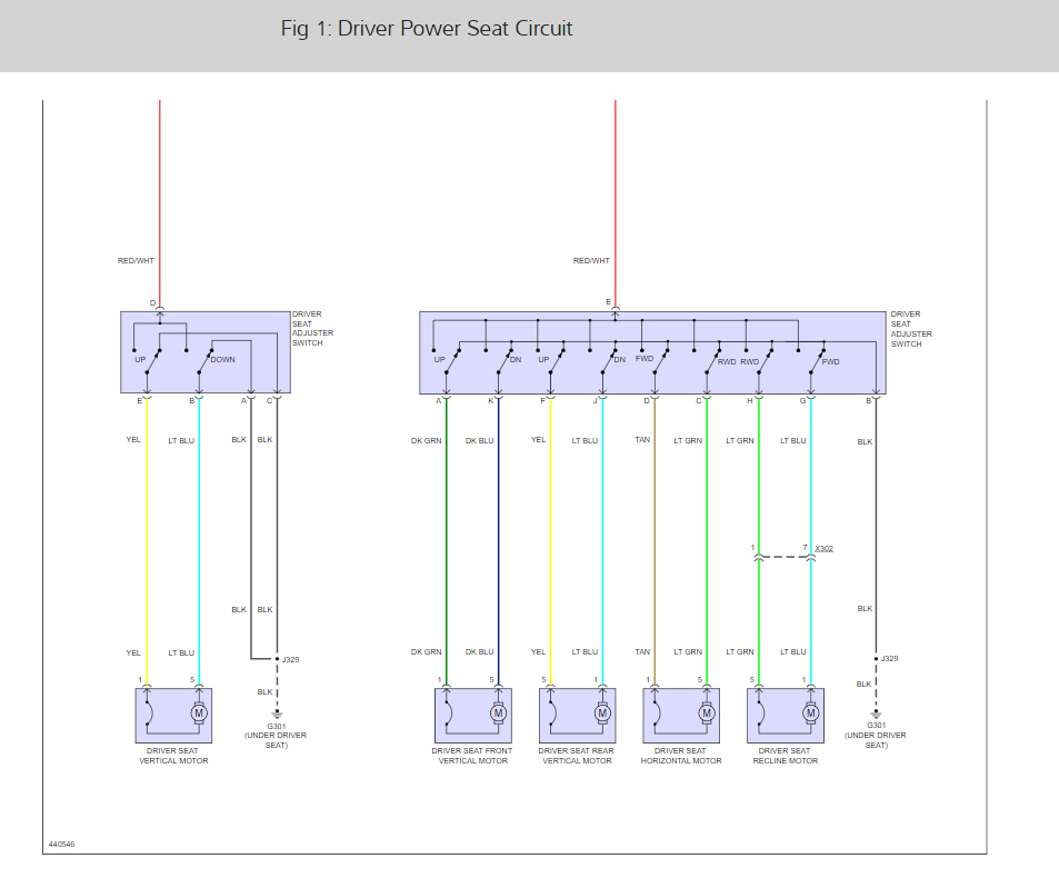 Now, the schematic shows the original location where the fuses would be. Since the vehicle wasn't ordered with a power passenger seat, chances are they will not be there. So, you will likely need to find a power supply and then using an inline fuse (which you can get at any parts store) and provide a 20 amp fuse for the lower seat controls and a 30 amp inline fuse for the lumbar control.