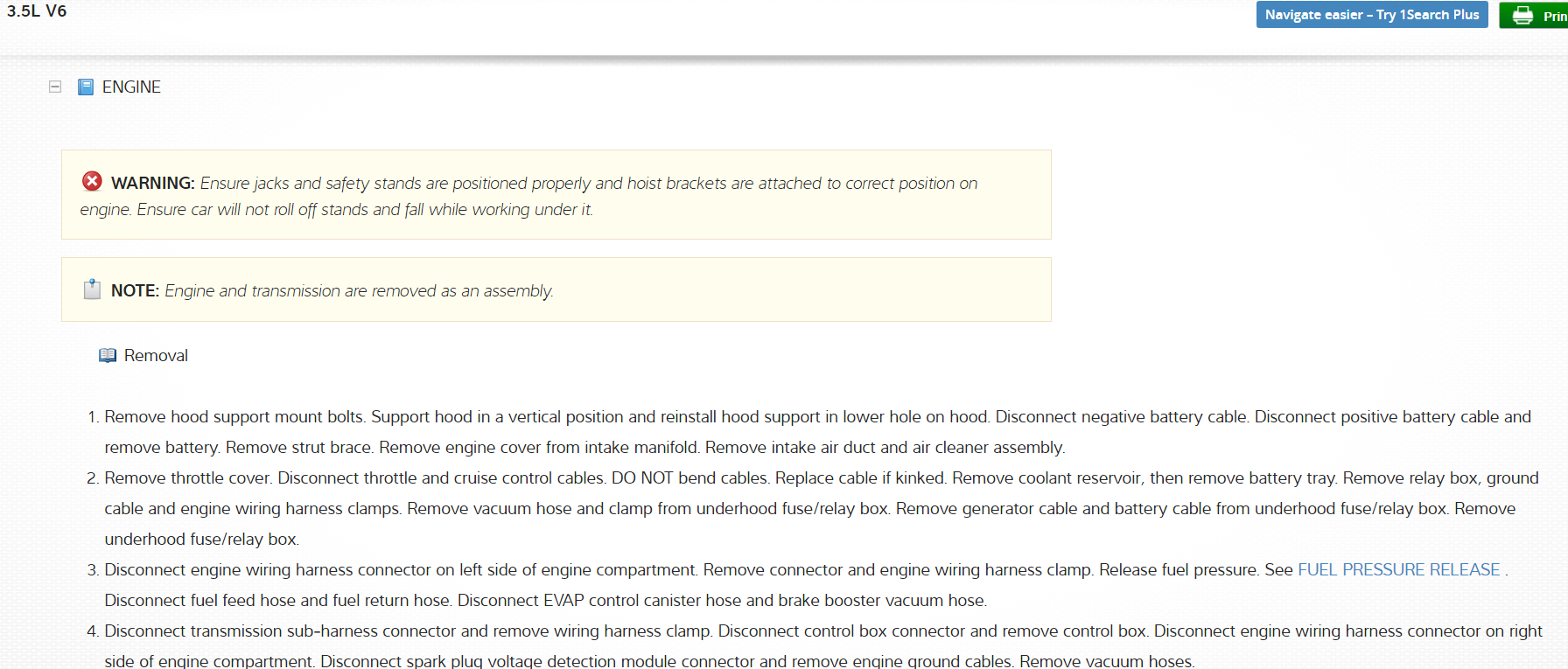 It is recommended to remove the engine and transmission assembly together from the top.