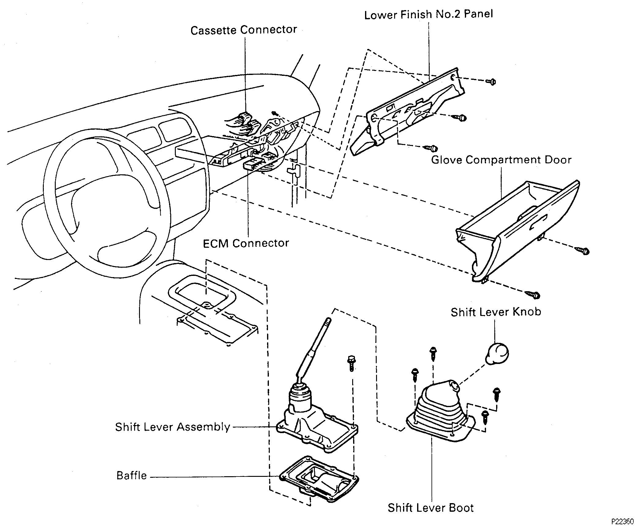 (c) Disconnect the 2 cassette connectors (cowl wire & engine wire) and 2 wire clamps from the lower finish panel.