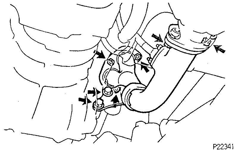 (b) Remove the 2 bolts holding the front exhaust pipe to the Three-Way Catalytic Converter (TWC).