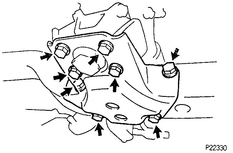 Remove the 8 bolts holding the mounting bracket to the mounting insulator and cross member.
