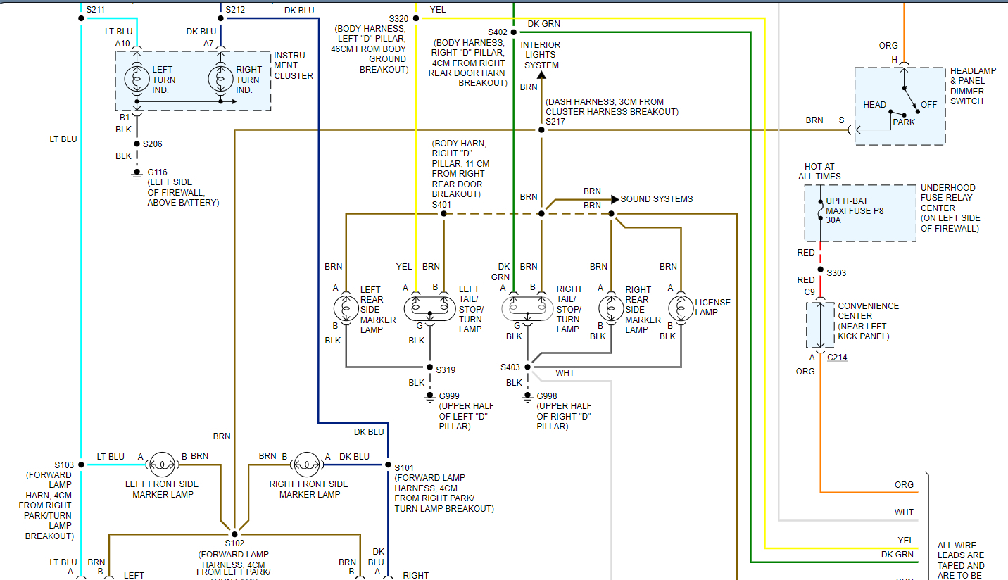 I attached a wiring diagram for you to view. The first thing I would do is disconnect the turn signal switch connectors under the dash and see if the fuse still fails.