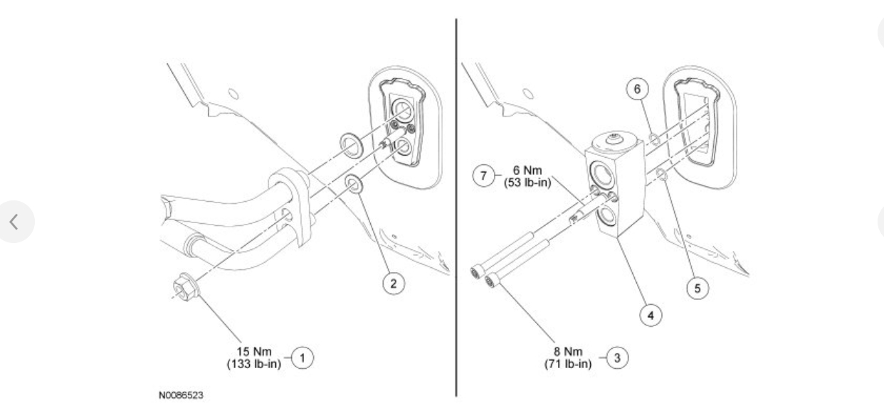 - If the TXV (Thermostatic Expansion Valve) stud has become loose during removal, or has been removed for any reason, tighten the TXV (Thermostatic Expansion Valve) stud to 6 Nm (53 lb-in) before the TXV (Thermostatic Expansion Valve) fitting nut is reinstalled.