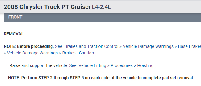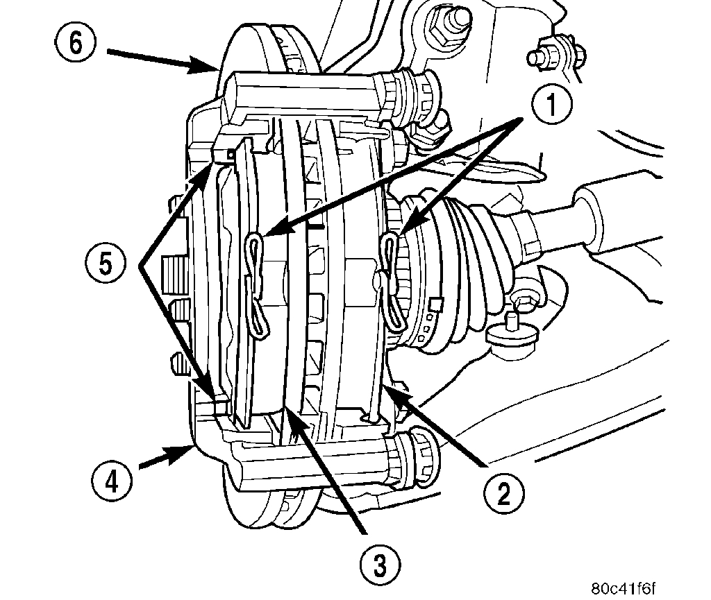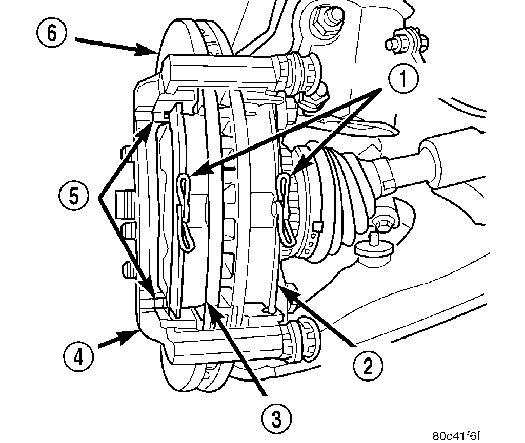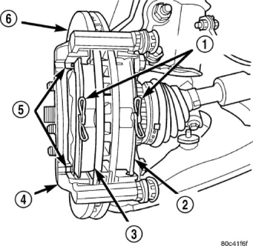 NOTE: Perform Step 2 through Step 5 on each side of the vehicle to complete pad set removal.