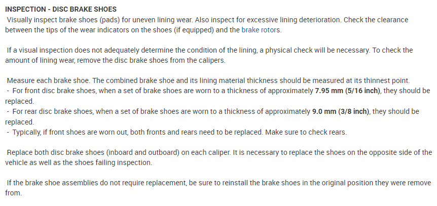 NOTE: It is important to inspect both front and rear brake pads during the same inspection. Typically, front and rear brake pads wear out at the same time.