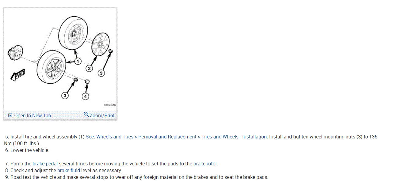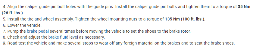 7. Pump the brake pedal several times before moving the vehicle to set the pads to the brake rotor.