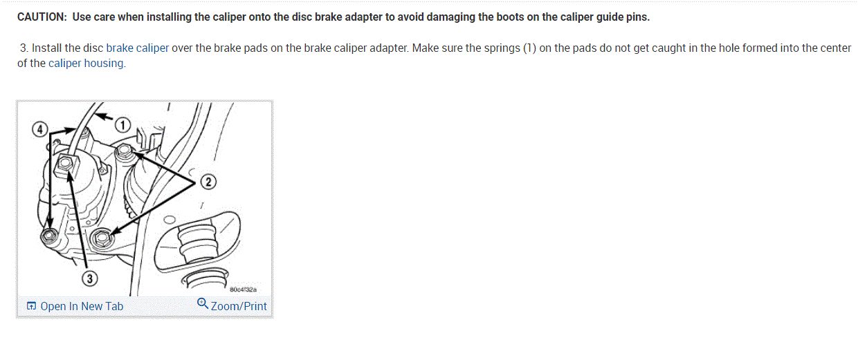 CAUTION: Use care when installing the caliper onto the disc brake adapter to avoid damaging the boots on the caliper guide pins.