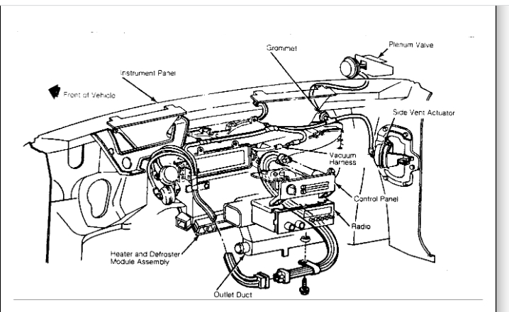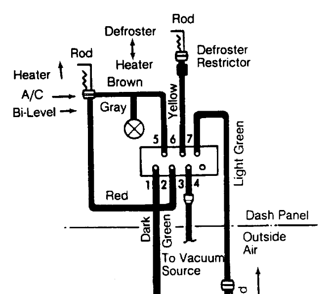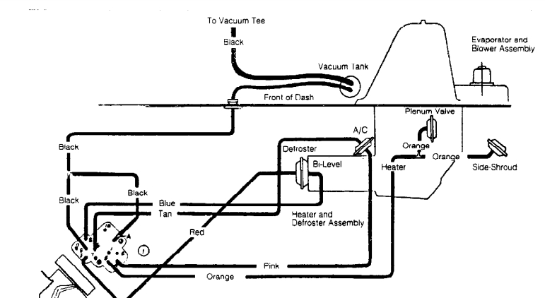 I need your help. I have the pickup listed above, with A/C and heater. The cable that opens the vent that lets in cold air or heat is stuck in the cold air position. I pulled out the control assembly. As i pulled out the control assembly, i forgot about the vacuum harness assembly, it pulled off. I need to know in what position the vacuum harness plugs back on. I am enclosing four (4) photos of the control assembly. Please help with any information you might have, thank you, Bill H. Comfort, Texas. Pictures would be very helpful also.