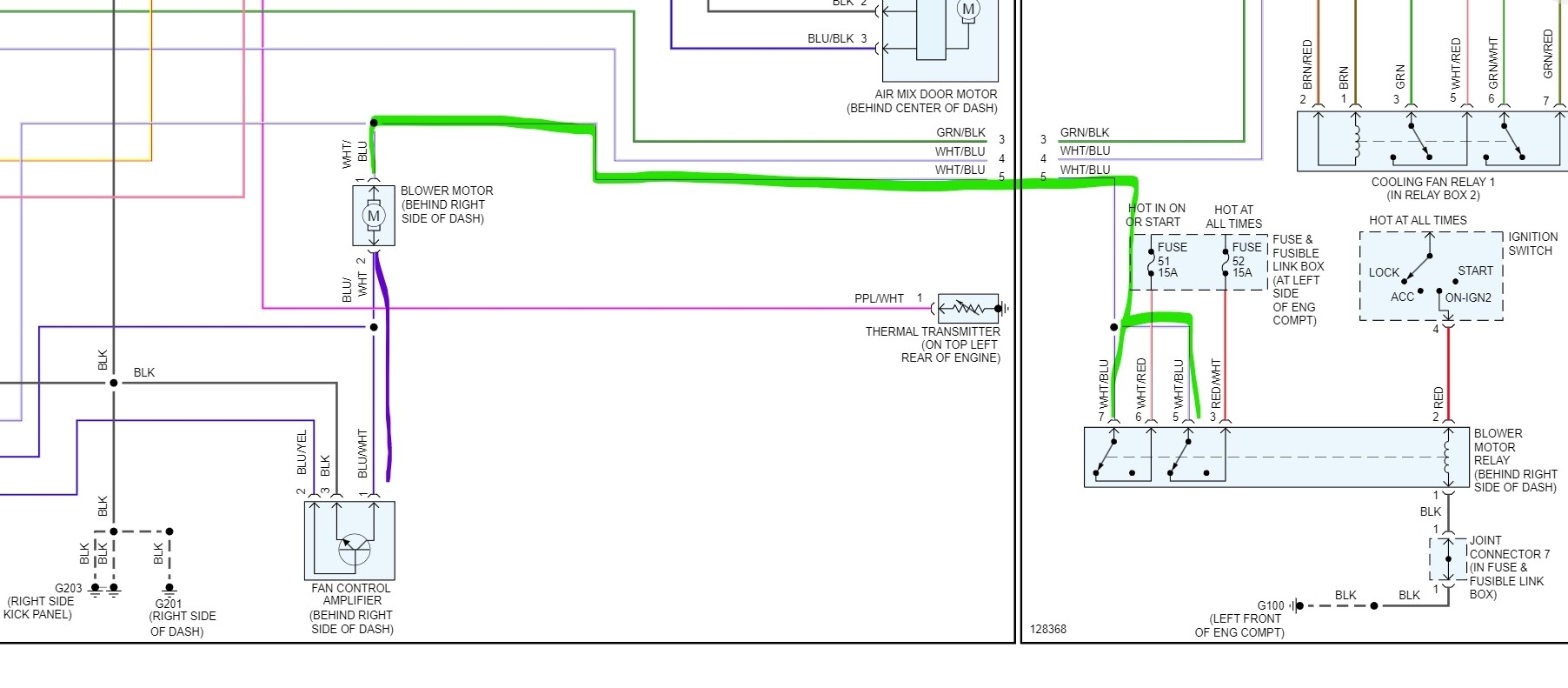 Recently my cooling fans threw a blade and wiped out the radiator. I installed new cooling fans, radiator, upper and lower hoses, new temperature sensor to turn on fans, 3 new radiator fan relays in relay box by battery. I also installed new cabin air filters as well. The new fans work well and coming on and off. The radiator is working great. Now my A/C compressor will turn on, but no blower motor comes on inside the car. I checked the two-blower motor 15-amp fuses in the fuse box under the hood by the battery, but they are fine. I have power to the blower motor relay under the dash as well. Both the wires going to the motor were tested with a test light and they are hot. I am stuck right now. Could it be the blower motor resistor or the motor? The A/C was working fine before I did the other repairs. Is it something I did or is this a coincidence? Help please!
