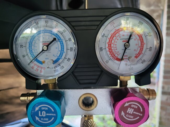 Clutch not engaged low side 55 PSI high side 0 PSI.