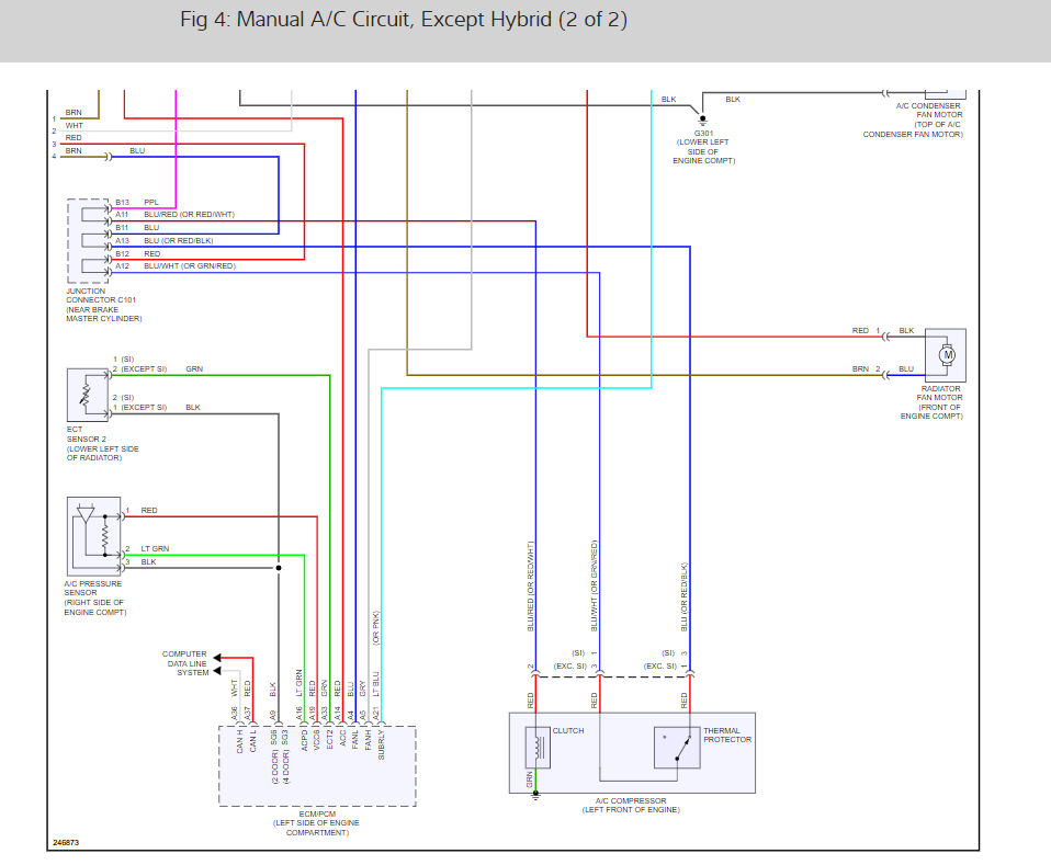 I put a new A/C compressor and flushed it and put new Freon in it. I check the relay and all connections. When I turn off my A/C via switch in cabin the radiator fan and A/C clutch kicks on. When I turn on the A/C they both turn off.