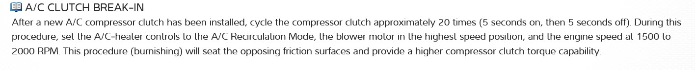 2. New compressor clutch also slipped after finishing the first install. Pressures indicated that low side pressure slightly high and high side pressure slightly low (according to the factory service manual).