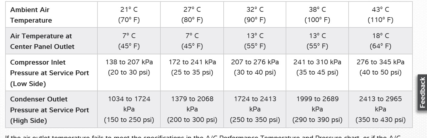 7. High side pressure around 225 low side around 45 at idle (700rpm) ambient air temp around 90-100. Again low side pressure slightly high and high side pressure slightly low.