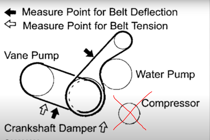 I attached two pictures below. The first is the belt routing with a functional AC compressor. The second shows the belt routing bypassing the compressor altogether.