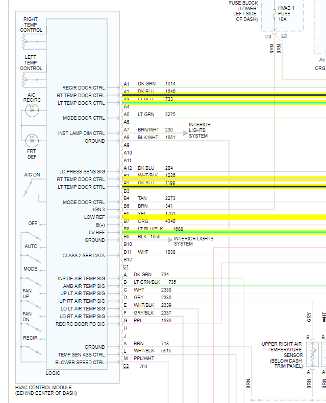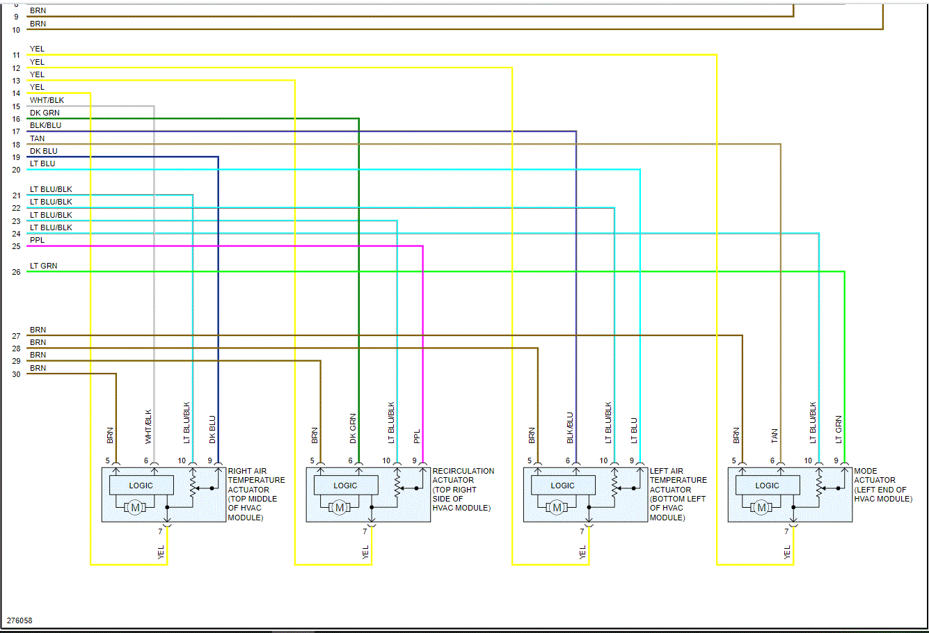 So even if you left it this way, the blend door would not change from that full position and it would blow hot air. You need the control module to be able to vary this voltage so that the door can move and change the temp.