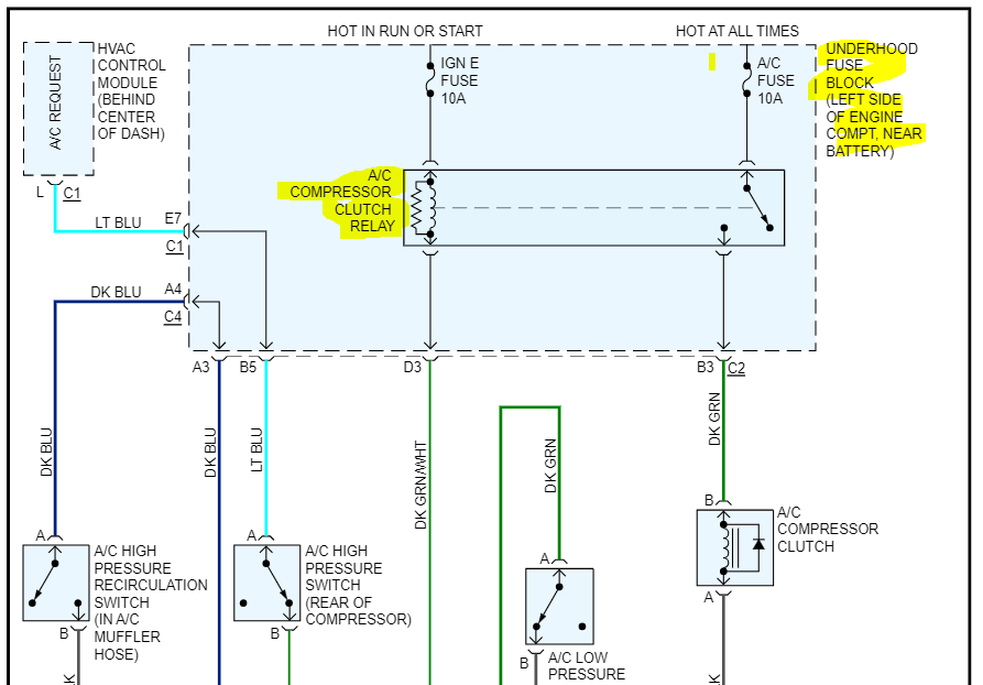 A year later i found the compressor running constantly even with the A/C switch off and not in defrost mode.