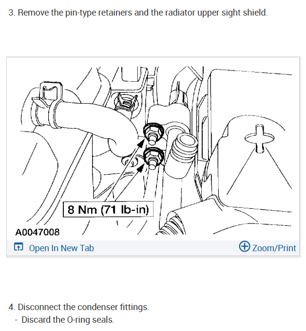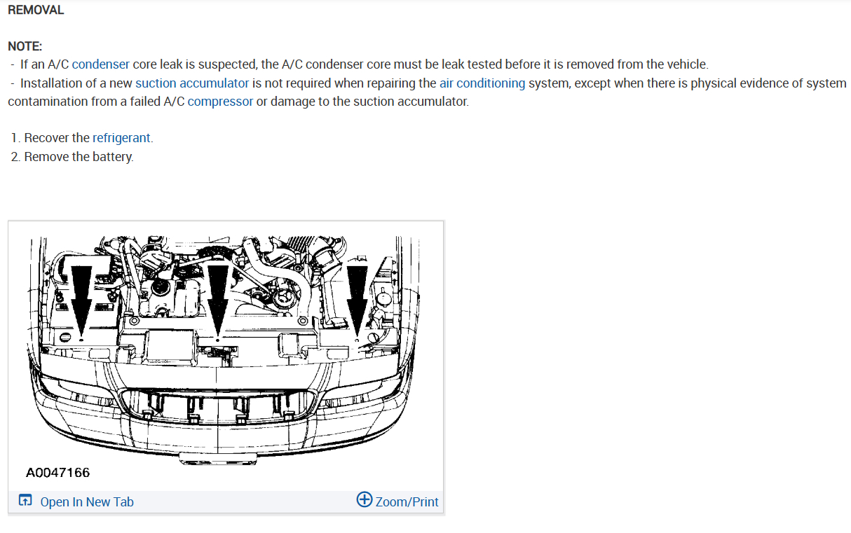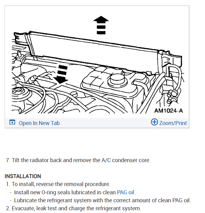 Alright! let do this, first you need to vacuum down the system and disconnect the battery. I would use a garden hose as well the hose off the radiator core which will help will air flow once the condenser is removed. Here is a video to help with the vacuum and recharge part.