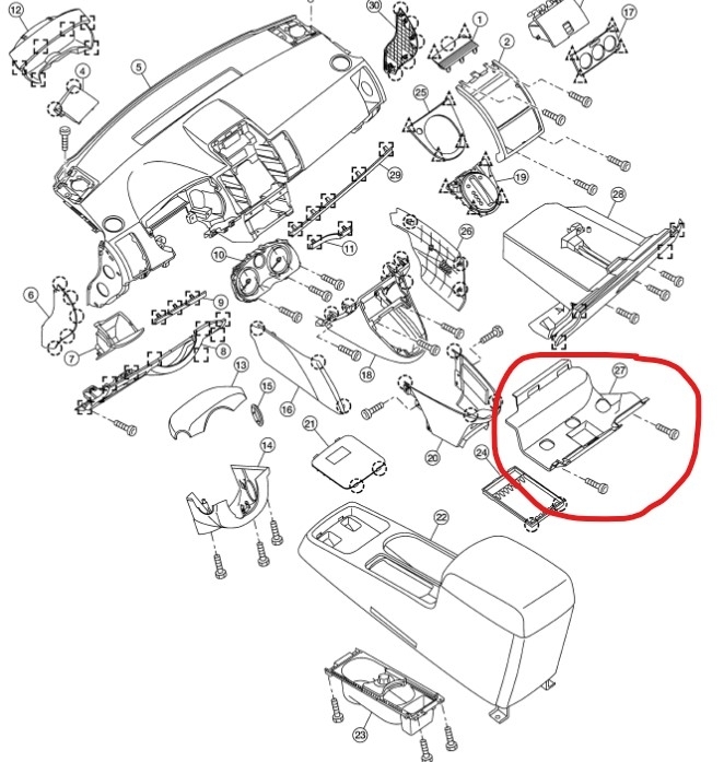 It does sound like the air mix door actuator has stuck or is having trouble reaching the desired location for all vents to have cold air. If all of the vents blow out of the same place when you select Defrost, Floor, etc. then I would check this. You just need to remove the lower glovebox finisher (circled below), which is the lower plastic piece covering the bottom of the glovebox. From there you will be able to see this actuator moving when you move the temperature knob. I would move the temperature knob and watch the motor turn and hopefully catch it slipping or stopping short of where it needs to go. If this part does not have a visible gear on the outside to see, take it out and look at it directly. In any case, I attached the diagrams and instructions below. Let us know if you need anything else, we are here to help.