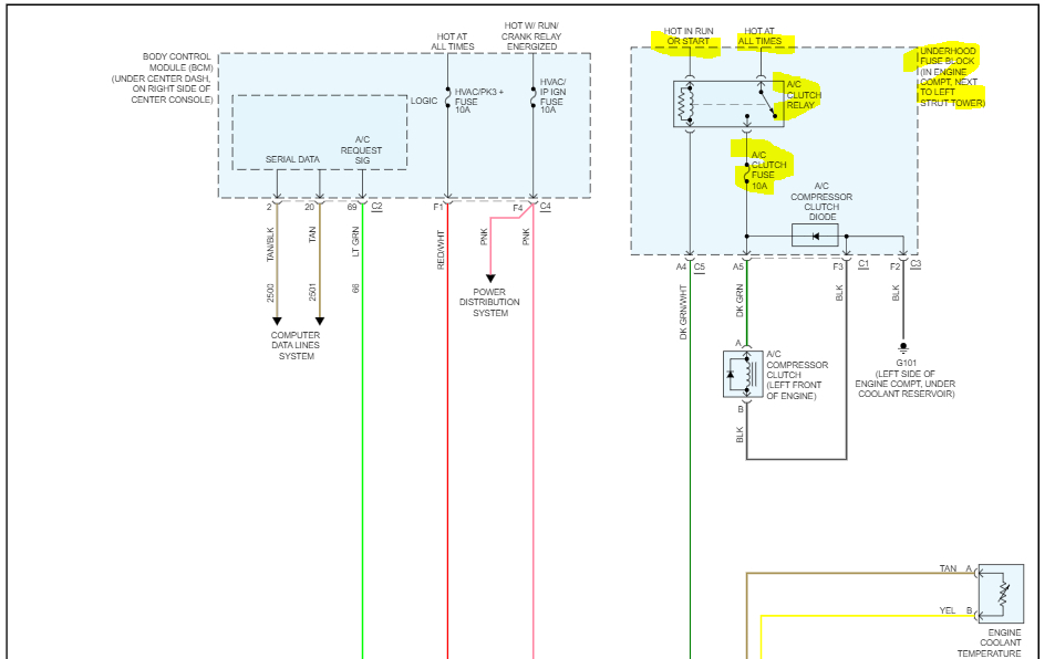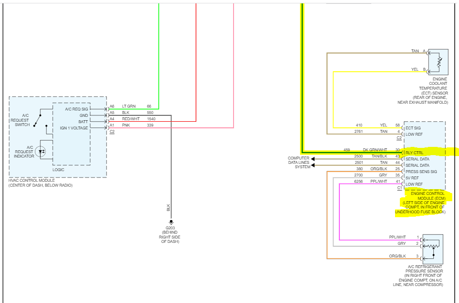 I then used a vacuum pump for 45 minutes. I then added R134a until it showed full. At this point the compressor clutch did not engage, nor was there any power to the 10-amp fuse for the A/C, however if I take the relay switch out and jump it with a wire the clutch does engage. I also swapped the A/C relay with the fuel relay and the car ran with no problems however, with the changed relay, the A/C clutch did not engage. Thanks in advance. I can use all the help I can get.