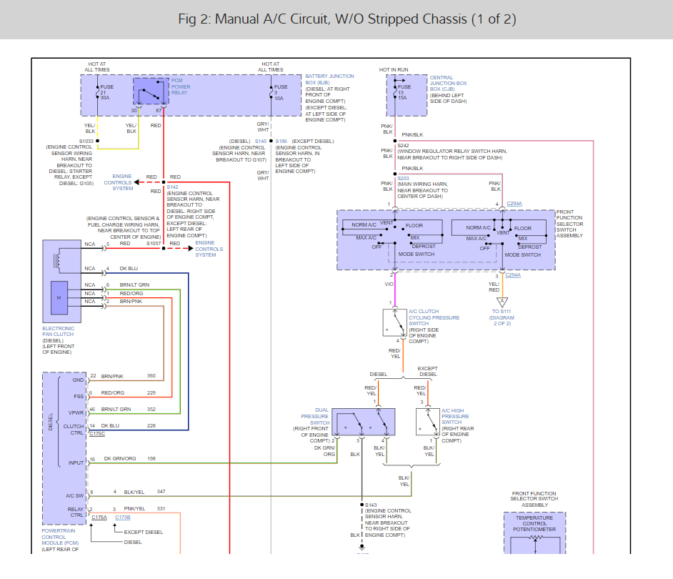 With Multi-Function Selector Switch on Max A/C a purple wire becomes energized with 12-volts.