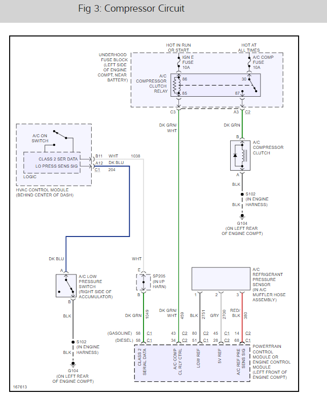 To clarify that last test, it was done while the engine was running and A/C on, working normally. then fed the 5v to the sig ret. as though it got there suddenly on its own. while there was a several second delay, it did deny the A/C while fed, then after about 15 seconds after removing the 5v it granted and began running the compressor again.