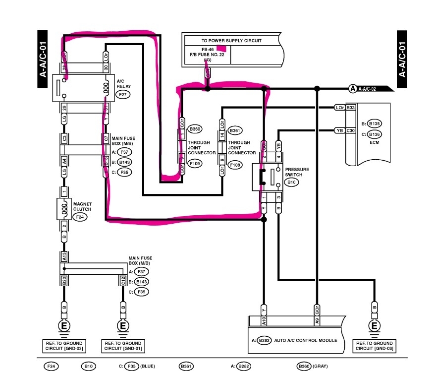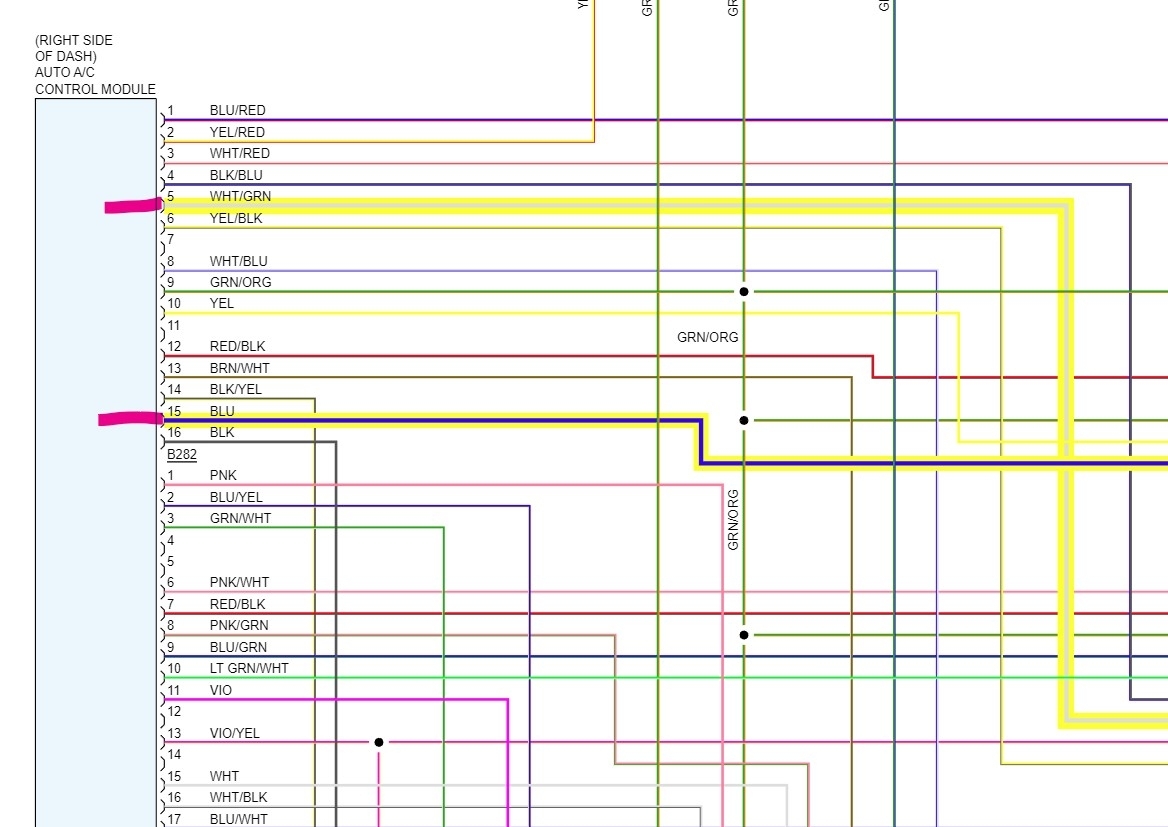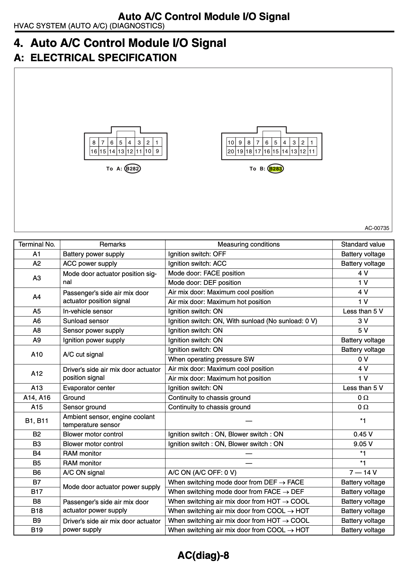 • AC Control Module Output Signal - (B282) 5 to 15: 3.5v (should be 5v)