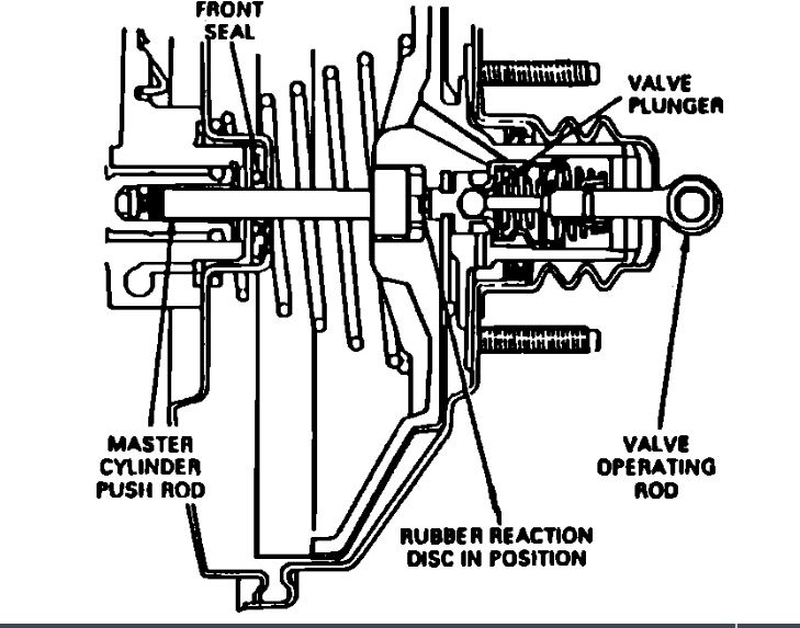 The three basic elements of the booster are the vacuum power chamber, mechanically actuated booster check valve and a hydraulic dual master cylinder which supplies hydraulic pressure to the brake system.