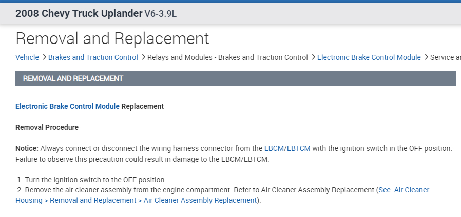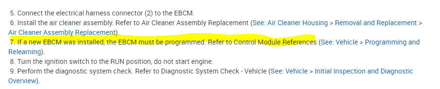 The ABS pump motor runs continuously. We believe the control module (EBCM) is at fault and intend to replace it. Any gotchas? Any special advice on making it go smoothly and painlessly? For this model, will the EBCM require reprogramming as well?