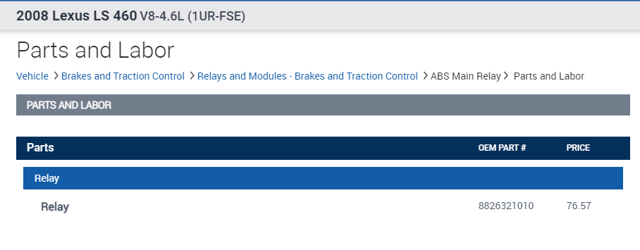 I just need to find one. How many ABS relays does the car have and their part numbers? I know both wouldn't fail, am trying to find out if they have the same part number.