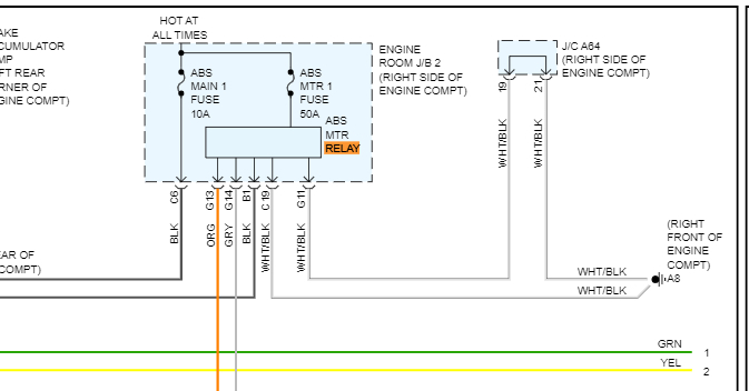 I just went through the wiring again. There only appears to be one ABS main relay. Have you found two or has someone told you there are two? I have been wrong in the past and will be again in the future (LOL), but from what I see, there is only one.