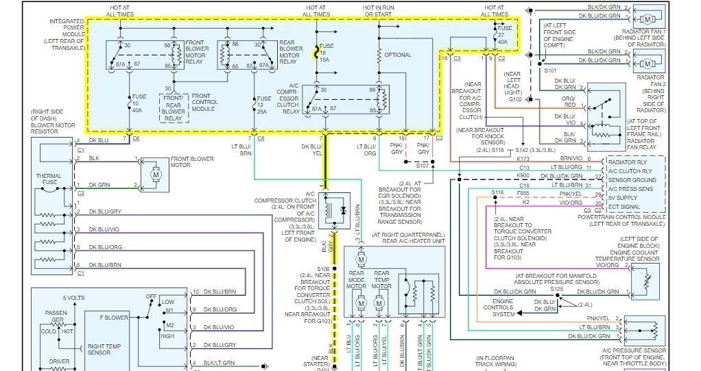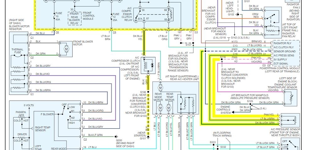 the compressor is controlled by the TIPM or the fuse block based on information from the pressure sensor. Check the fuse listed in the diagram for power on both sides.