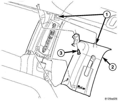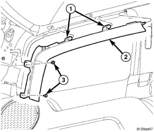 Start with the D pillar this is the one in the rear corner between the hatch and side glass. Put the seat cushion into the stowed position but leave the back up. Remove the bolt that holds the bottom of the seat belt to the bracket on the side. Gently use a trim stick or flat thin bar and pull the headliner trim along the edge, then remove the screw at the top of the trim panel and gently pry the trim clips free. See D pillar 1 and 2 images.