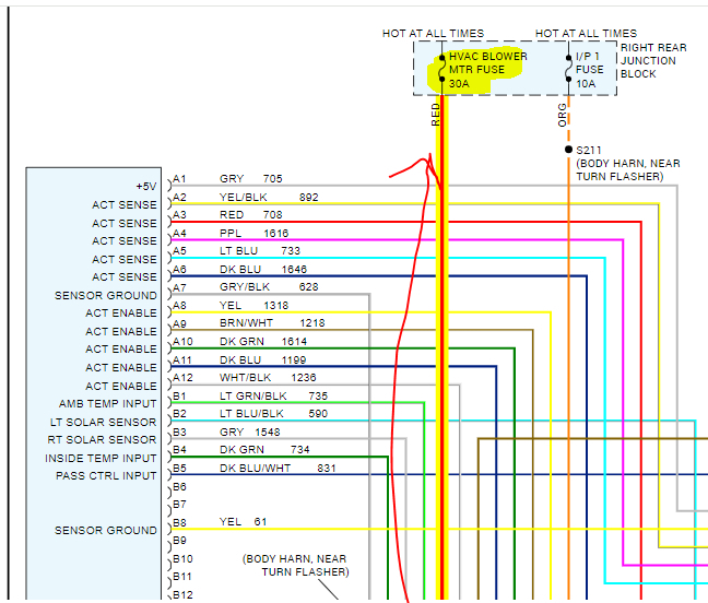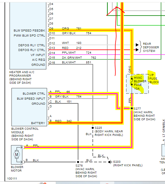 I attached two pics below showing from the wiring schematic. Note there are two fuses. Here is the interesting part. Power to the blower motor comes directly to the motor from fuse from the right rear junction block. However, for that to power the blower motor, the blower control module has to provide a ground path.