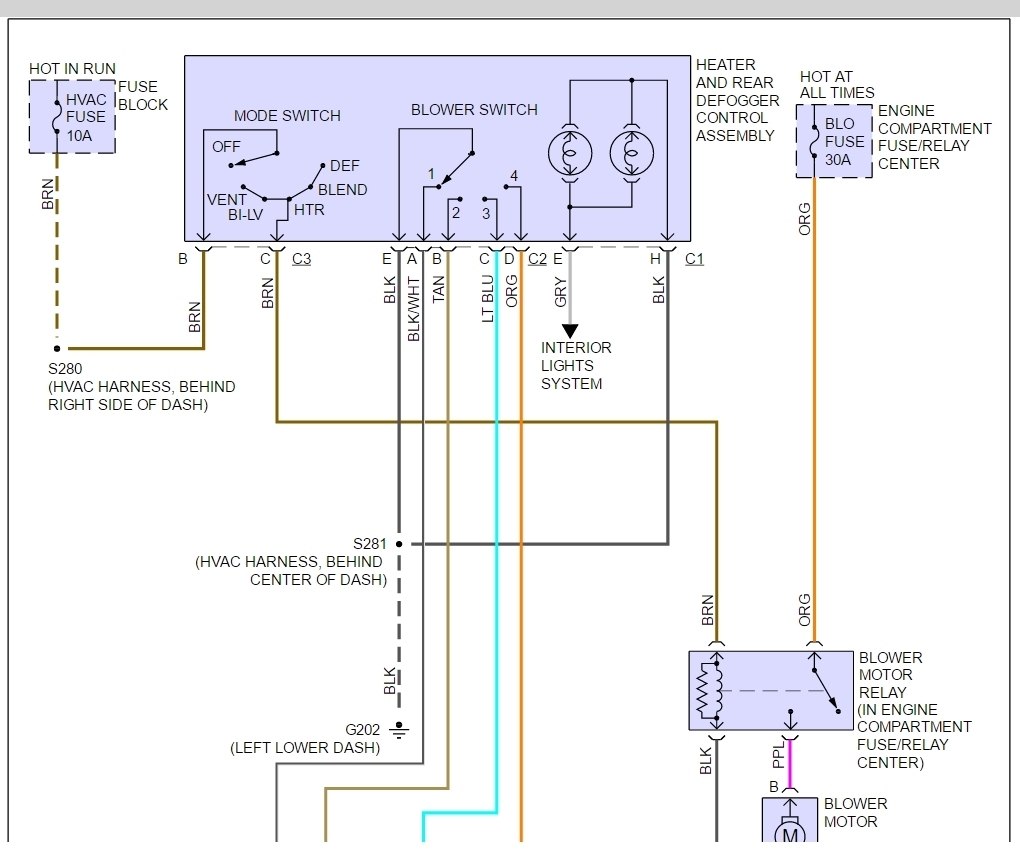 This has been very helpful to me, but my problem has not yet been solved. In helping Narcissus Razmataz said there was much more to check if one step did not solve the problem, and these further diagnostics would involve the mode switch and blower switch. I have power to the mode switch from the blower relay, but I have no clue how to continue checking this problem, and my blower is still not functional.