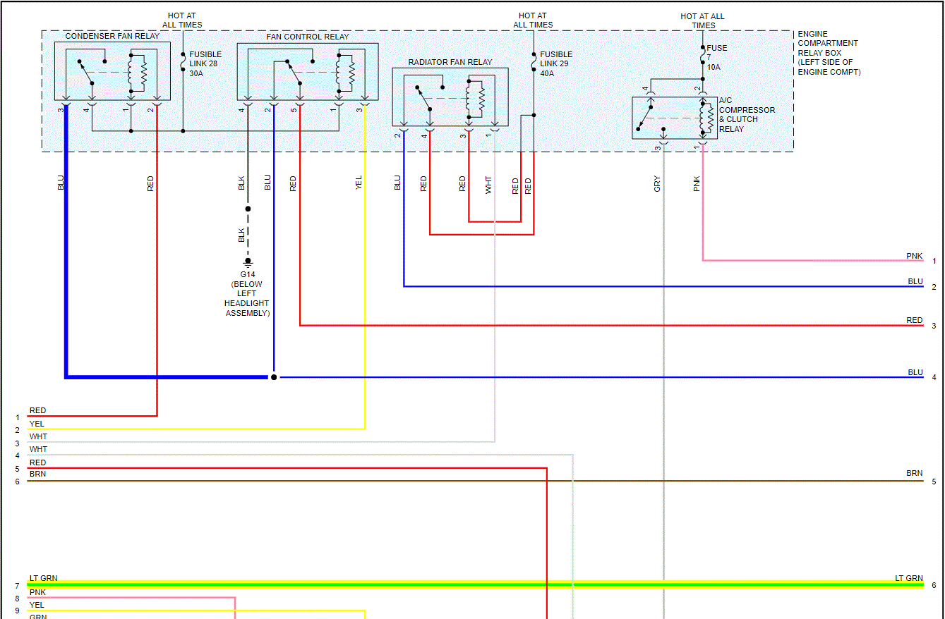 I highlighted the wire throughout the schematics so you can follow them. Also, I had to cut the pics in half to make them readable, but I did overlap them so you can follow from one to the next.
