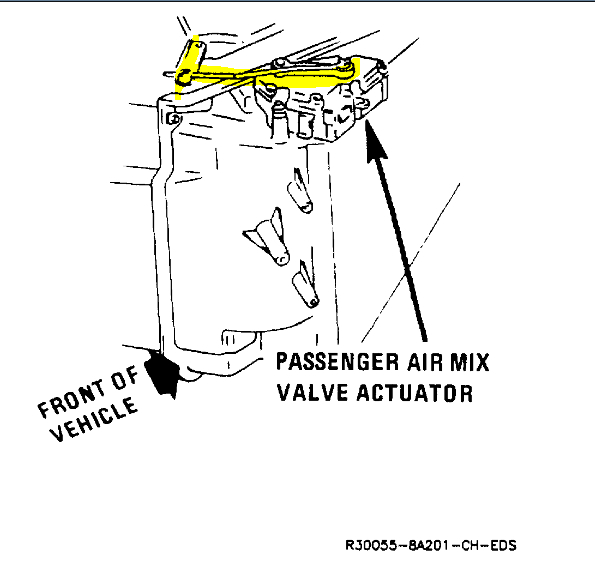 The actuator is approximately the center of the dash and mounted on the HVAC box under the dash. I found a basic picture of what you are looking for. Check to make sure the linkage isn't disconnected.