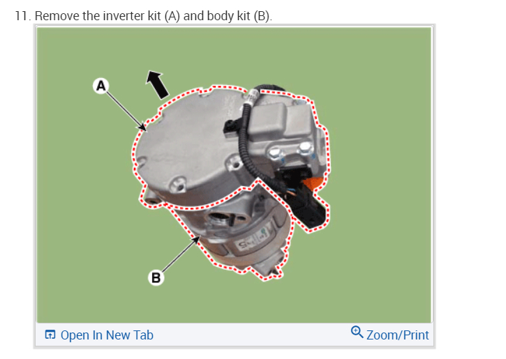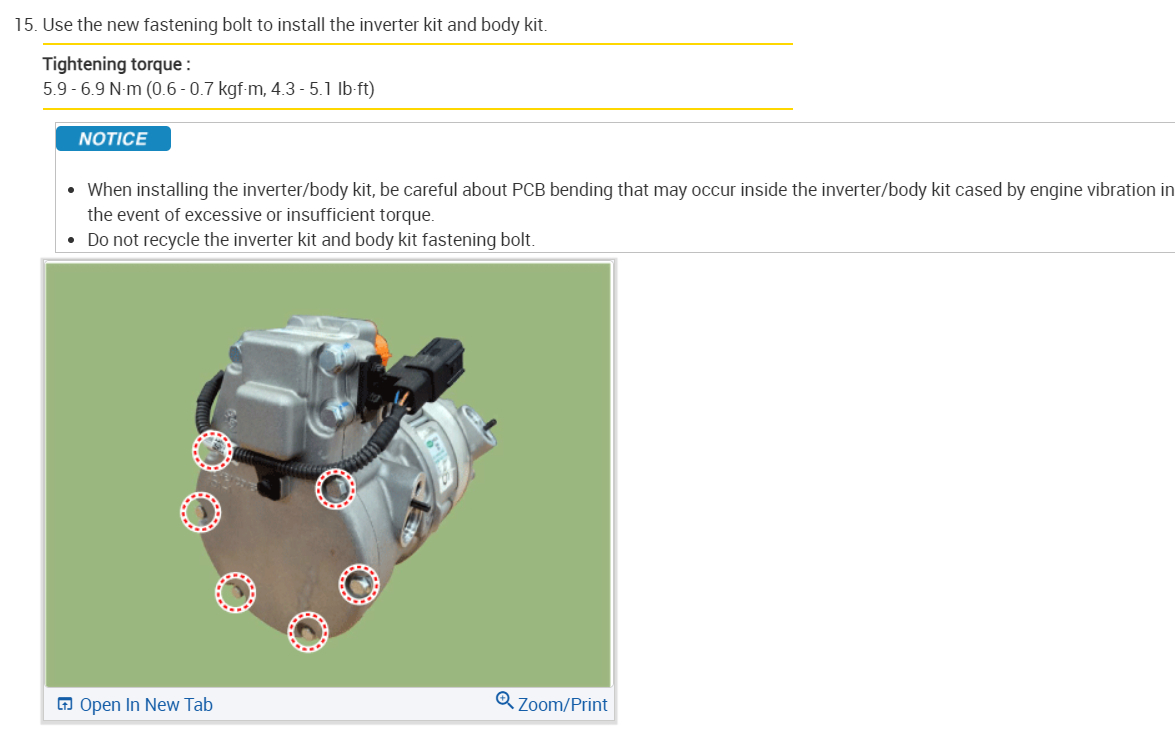 This car has an electric compressor so you will need to swap out the voltage inverter. Here are the instructions on how to do the job. Check out the images (below). Let us know what happens and please upload pictures or videos of the problem so we can see what's going on.
