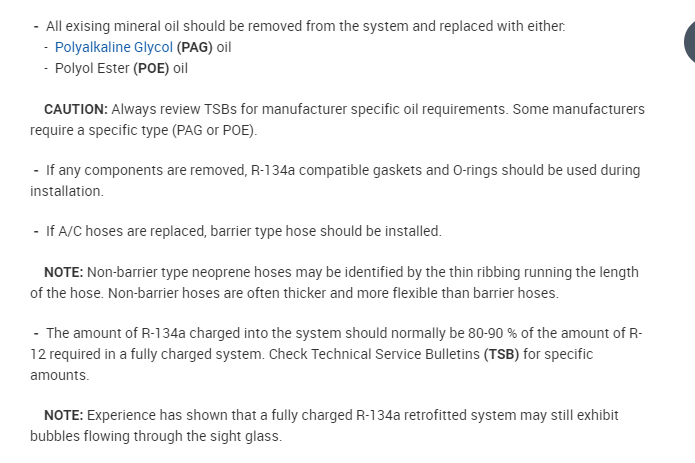 Then you can replace the lines and seals as stated below to fit the new Freon.