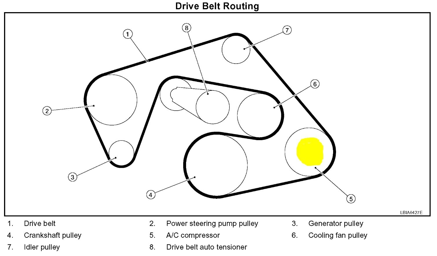 Now you need to remove the air cleaner housing and the duct that connects it to the fender to get room enough to get to the drive belt and compressor mounting bolts. Now that you have room you can remove the AC lines from the compressor and the wiring connectors. Now release the belt tensioner and remove the belt from the engine, if the compressor seized and the pulley doesn't turn you will likely want to replace the belt as it would have been damaged by heat. Then remove the three bolts and the compressor. Replace it by reversing the process, install new O-ring seals on the lines and measure the oil from the old compressor and the new one so you can replace the lost oil. Then bolt it in place and tighten the mounting bolts to 23 ft lb and the lines to 82 inch pounds. Now install the new belt and take it to a shop for a vacuum and recharge. Or just connect the lines up and use it as an idler only. You can get a replacement compressor online for around $300.00 US.