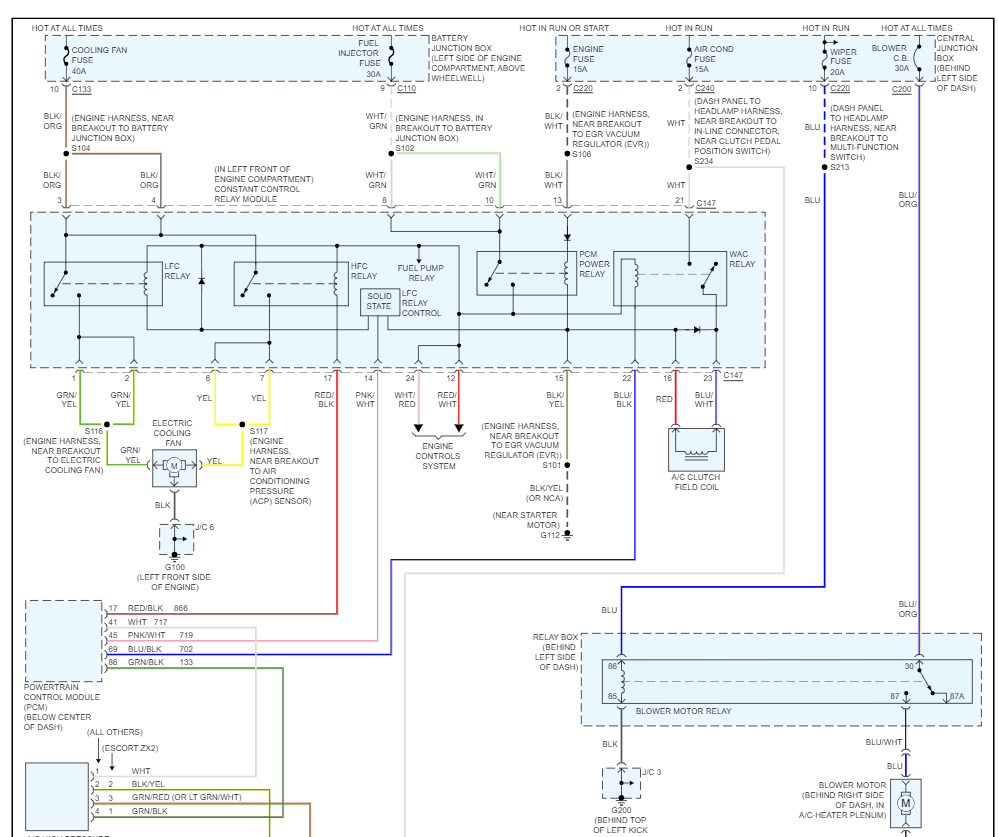 Next idea was to try with swapping horn and clutch relays and give some try of couple of days to see if problem still occurs, BUT it was also not possible in practice as in theory, the clutch just turned on and off immediately and then did not come on again. The relays are the same model, but of AC is blue color 30A and of horn is brown color 20A.