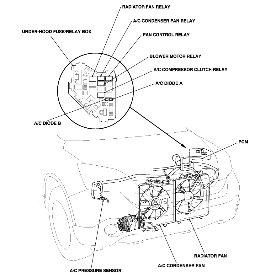 I believe you said that the engine cooling fan still comes on but that the AC fan(s) don't correct?