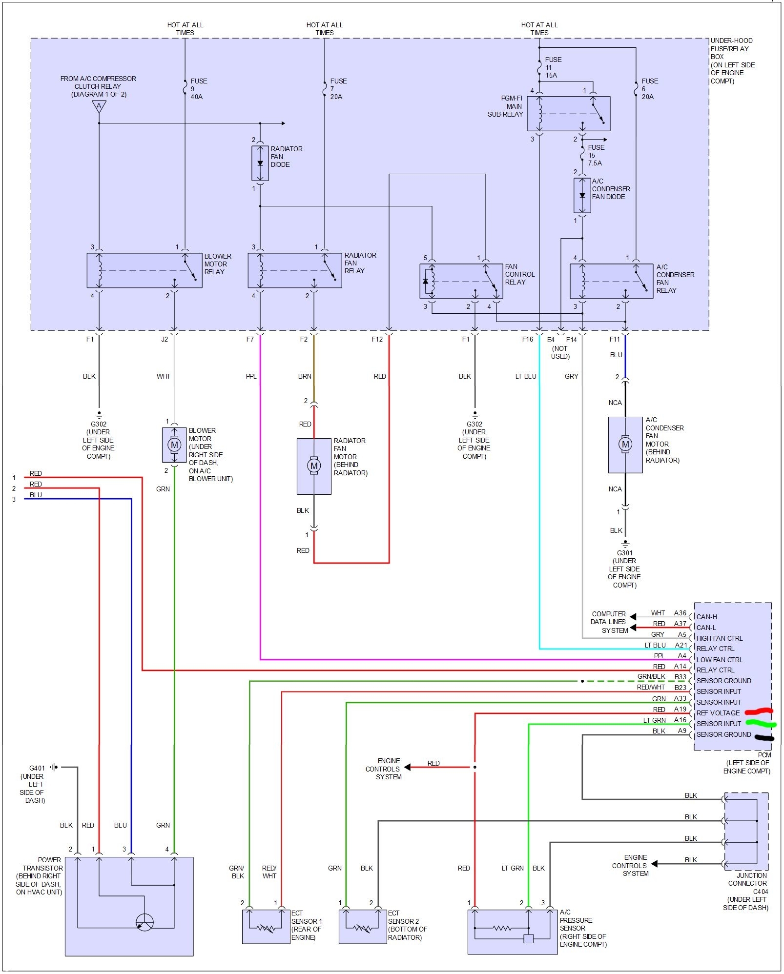 In that case the blower motor relay is OK. The radiator fan diode and relay are working as are ECT 1 and 2.