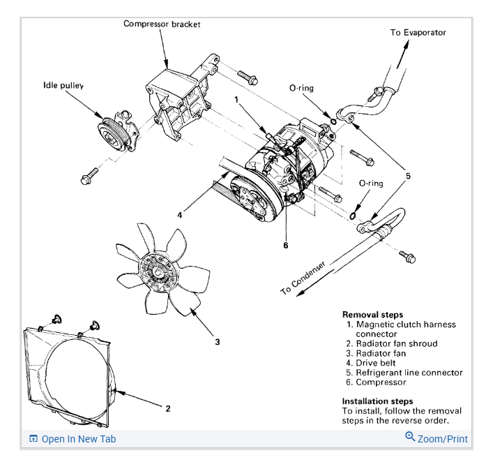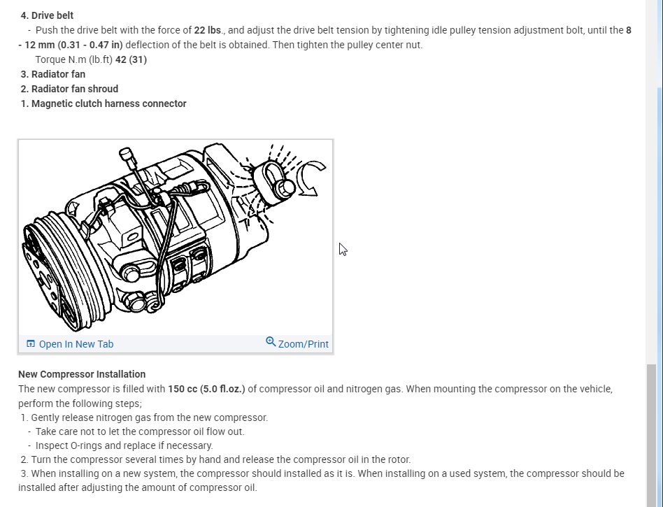 Anyways power steering pump had to be pulled. Ratcheting wrenches would of been awesome. Has to be the thin ones though. Fan and such didn't need removed. The back lower bolt couldn't get it out as it was to long and butted up against something else. Left it for last and just pulled it out still on the compressor. So be sure to put back bolt Into the compressor before sitting it back down in there otherwise the bolt is to long to fit in. Just a few things I learned and thought I'd share for someone else.