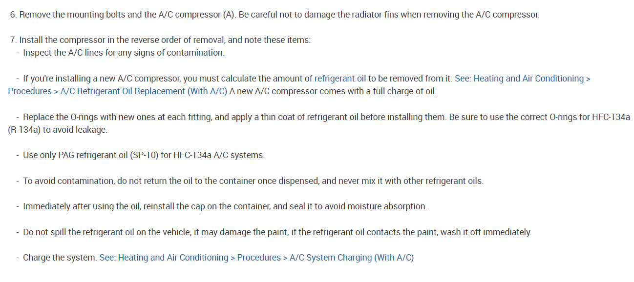 My compressor is getting a little noisy and I'm going to replace it. I bought a Honda compressor which is prefilled with oil. My question is, do I have to remove any existing oil from the system, or does it all settle in the compressor itself? Will evacuating the system with a vacuum pump remove any oil?