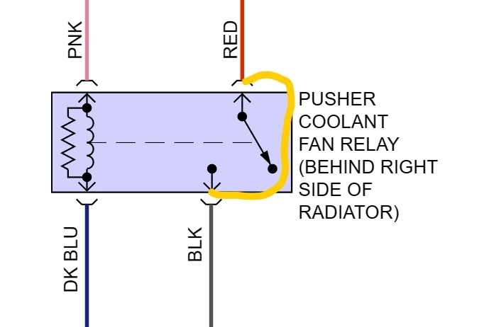 If you do have power, there I would make a jumper wire with 12-gauge wire and 2 male flat blade crimp terminals. This will bypass the control side of the relay and verify all the wiring to the fan is good, at least the side of the circuit that powers it.
