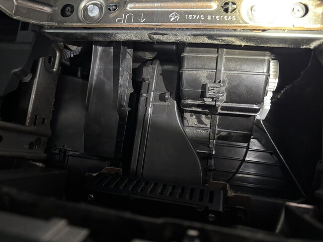 Hmm, I don't see it either, does this truck have dual zone climate controls? It might be further under the HVAC plenum, this is all they show for the location.
